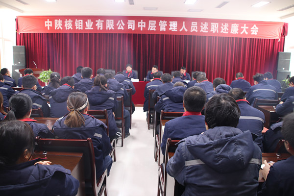[2019-01-21]中陕核钼业有限公司召开中层管理人员述职述廉大会1月18日下午,中陕核钼业有限公司召开2018年度中层管理人员述职述廉大会。公司全体干部职工参加会议。中陕核钼业有限公司副总经理南燕主持会议。中陕核钼业有限公司常务副...