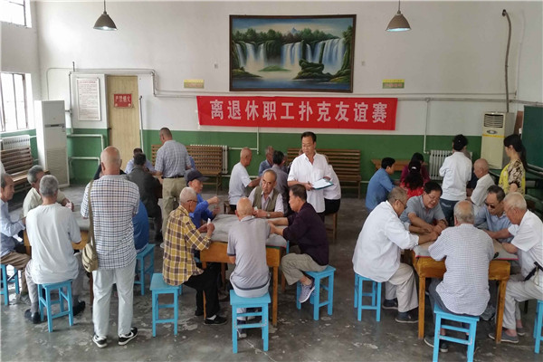[2018-09-14]离退休职工管理中心举办“迎双节?促和谐”扑克牌友谊赛为了喜迎“双节”,丰富活跃离退休职工的业余文化生活,9月12日至13日,离退休职工管理中心在职工活动中心举办了“迎双节?促和谐”扑克牌友谊赛,近百名离退休职工积极踊...
