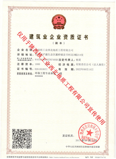 [2017-08-22]地质工程公司环保专业承包资质成功升二级8月17日,经陕西省住房和城乡建设厅批准,陕核西北地质工程公司环保专业承包二级资质成功升乙。 资质升级工作是地质工程公司今年重点工作之一,自2017年6月进入筹备阶段...