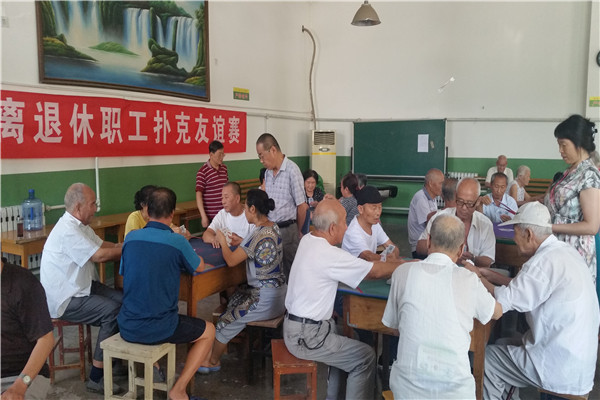 [2017-08-24]离退休(待岗)职工管理中心举办离退休职工扑克友谊赛8月21日至8月23日,离退休(待岗)职工管理中心在职工活动中心举办了以健康 快乐 和谐主题扑克(拱老K)友谊赛。 离退休中心工作人员根据离退休职工的年龄和身体特点,从...