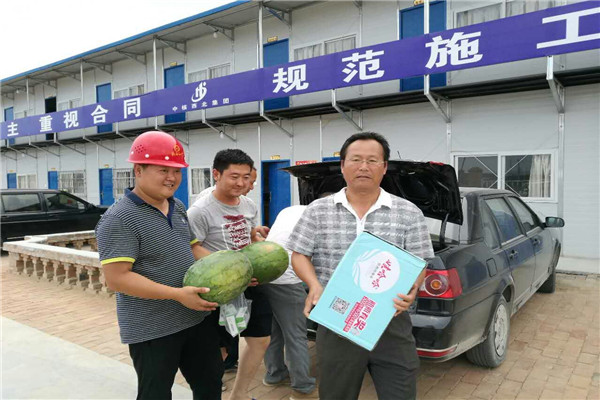 [2017-07-26]矿业发展公司潼关钼业分公司给建设工地“送清凉”2017年的夏天是多年不遇的高温暑期,这对生产一线带来了严峻考验。为了确保一线安全生产,保障野外露天工作人员的健康,推进施工进度,7月22日,矿业公司党支部书记陈殿民...