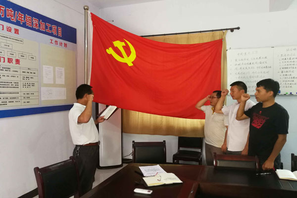[2017-07-03]增强党性观念 牢记宗旨意识为纪念中国共产党成立96周年,矿业发展公司党支部在潼关县寺底村2万吨∕年钼深加工项目部,组织开展了“激励党员树立崇高理想和坚定信念,激发广大党员干事创业、创先争优...