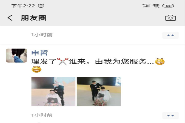 2月15日,天空蔚蓝,申哲从朋友那里借来一把电动理发器和一件理发围布,兴冲冲地跑到公司给同事理发,同事们也是别无他法就半信半疑地将“脑袋”交给了他。申哲摆出一副很专业的样子,前后左右细细打量,一会儿拿着理发器推剪,一会儿用美发剪刀修剪,不一会就为三名同事理完了发。理完发的小伙子们一个个精神抖擞,都夸赞申哲的理发手艺。