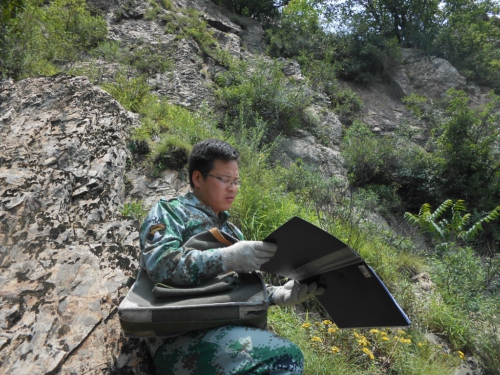 我是一名新员工,来单位工作快一年了,而陈哥参加地质工作已经8年多了,地质经验比较丰富。这是6月21日,我和陈哥在工作区做地质物探测量过程中的几句交谈。那天恰是端午假期的第二天,但我们双槽地区铀矿地质调查项目组一大早就上山开展工作,按工作分配两人一组,我和陈哥的任务是第24条线。由于近年来国家鼓励退耕还林,以至于这些山上植被茂密,荆棘密布。陈哥参照地图,按任务路线让我用罗盘打10°方位角,然而沿着这个方向看向前方,基本无路可寻,而且地势越来越高,越来越陡。