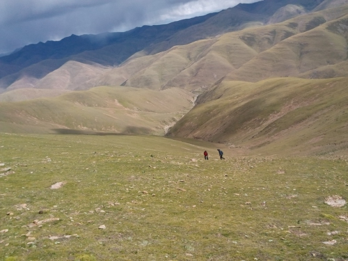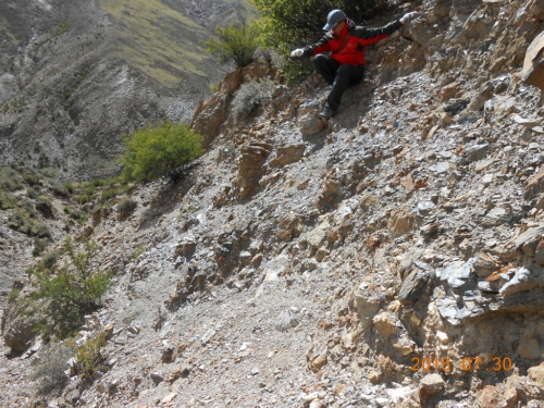 身处高原地区,由于这里氧气十分稀薄,所以大家每走个二三十米就要停下来休息一下,调整一下呼吸。在高原地区工作,还有一个问题就是恶劣的气候环境。在这里,经常是一片云飘过,紧接着雨、冰雹或雪就会接踵而至。由于工区内地形切割强烈,时常是翻过一个大深沟,等着你的又是另一个深沟。终于到最后一个陡坡了,但海拔的增高也让大家的身体达到了极限,步履维艰。突然,豆大的冰雹夹着雨水凶猛的砸了下来,每个人心里都很焦虑,全身都没劲了,又碰到这鬼天气,怎么办?“爬吧!”我们这时总会相互鼓劲,“今天线不跑完,明天还得再爬一遍,不知道明天又是什么天气呢。慢慢爬,就剩一点了。”