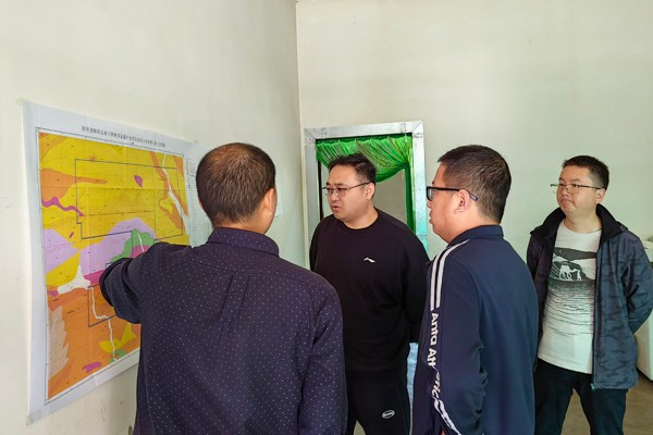 4月13日,王得权一行深入平利县瓦房沟地区勘查项目,查看了项目部驻地工作环境,听取了项目负责人董强强关于项目进展、安全生产等情况的汇报,并检查了项目野外工作原始资料及阶段性成果。随后检查组深入项目野外一线,实地考察了工作区矿产勘查工程、检查矿化异常点,详细了解项目的野外环境、工作进展,并与项目人员进行了深入交流。