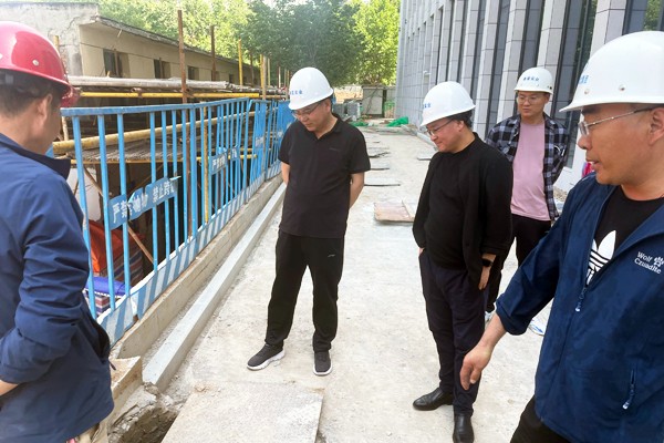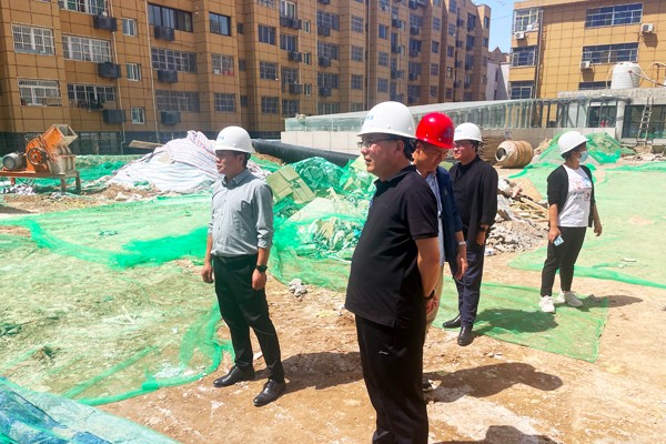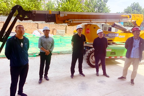 郭金锁一行深入施工现场,听取了胡小佳就项目施工进度、验收准备工作及安全生产工作的汇报,查看了现场施工实际情况,并对安全生产、工程进度等情况进行了检查指导。