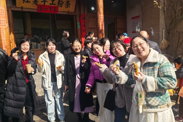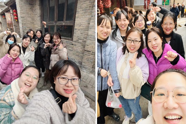 公司女职工轻装上路,乘坐大巴来到了袁家村。袁家村是关中印象体验地,高大的仿古式门楼、雕梁画栋的戏楼、雪松之中掩映着的二层民居,彰显着袁家村的富足;保宁寺、农家乐以及传统的豆腐坊、磨坊、油坊、醋坊等手工作坊和传统建筑,展示了关中农村从明清至今的农村生活文化的演变,为常处城市喧嚣的人们提供了舒适、极具农村风情的氛围,是消除疲惫、品尝特色美味、放松心情的去处。大家兴致盎然,褪去了身上的各种标签,三五成群,边走、边品、边欣赏,谈天、谈地、谈趣事,悠哉、美哉、快哉!