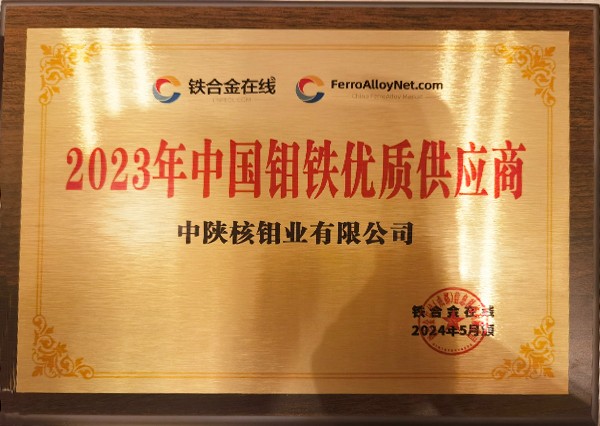 中陕核钼业有限公司连续三年荣膺铁合金在线“中国钼铁优质供应商”