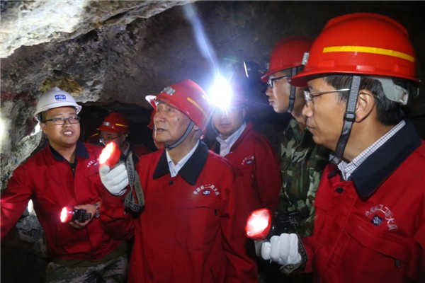 为了对华阳川地质找矿工作有直观认识、进行深入了解,8月6日,十二位专家亲临华阳川项目进行了现场考察。听取了项目部简要汇报。随后,他们不顾年事已高,爬上陡峭的山体,实地查看了地质剖面、岩心、标本等情况,并深入坑道查看矿体,确保了研讨会顺利召开。