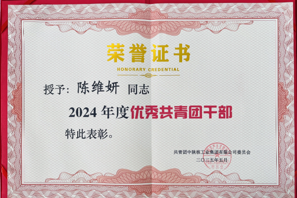 近日,公司2个先进集体和4位先进个人荣获了中陕核集团2024年度团青工作荣誉称号。地质调查院团支部荣获中陕核集团“五四红旗团支部”称号,中陕核新材料有限公司钼铁车间荣获中陕核集团“青年安全生产示范岗”称号,陈维妍荣获中陕核集团“优秀共青团干部”称号,新材料公司尚益良、地质调查院黄家瑄荣获中陕核集团“优秀共青团员”称号,中陕核工业集团测绘院有限公司袁晨鑫荣获中陕核集团“青年岗位能手”称号。