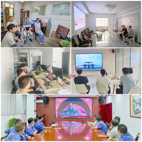 上午9时,大会正式开始。当激昂的国歌响起,公司主会场及各野外项目现场的员工们全体起立,齐声高唱国歌。习近平总书记发表重要讲话;随后,在习近平总书记的检阅下,空中护旗梯队、徒步方队、战旗方队、装备方队、空中梯队依次通过天安门广场,接受党和人民的检阅。参阅的均为国产现役主战装备,既有传统主战力量展示,又有无人智能、水下作战、网电攻防等新型作战力量参阅,充分展现了我国强大的国防实力和现代化军事建设成果。观看过程中,职工们全神贯注,被阅兵式的宏大场面和庄严氛围深深震撼。