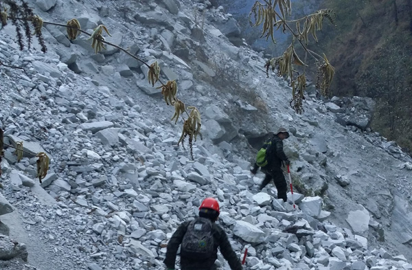 所有的苦所有的累,历练了这支无畏的队伍。5个多月下来,大家晒黑了,累瘦了,身上是或大或小的伤疤,但他们无怨无悔。引以为豪的是,他们圆满完成了工作任务,赢得了甲方的赞誉,为全国最后一条公路的顺利开通做出了陕核测绘人的贡献,在西藏竖起了陕核测绘的旗帜!