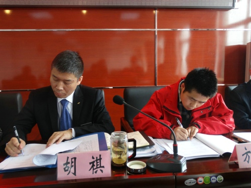 胡总代表公司同各部门(中心)签订了《2015年经营指标责任书》、《安全生产责任书》。