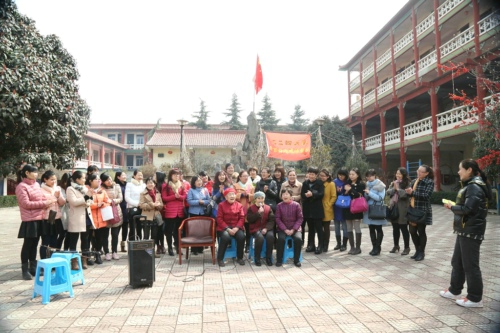 这是一座闹市中的雅致小院,几缕春风拂过,树木已染新芽。乙未年正月恰逢“三八”国际妇女节,院内大红灯笼高挂,节日气氛正浓。在这美好的日子里,大队女职委带领女职工志愿服务队走进小院——灞桥区东林老年公寓做义工,传承敬老美德,与友善同行,给老人们送去了关爱、欢笑与祝福,和老人们共同度过了一个幸福而美好的节日。