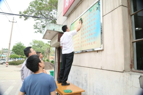 4月30日下午,在团委书记何厚锦的带领下,团员青年们手提水桶、抹布等工具来到大队离退休职工活动中心义务打扫卫生。大家不怕脏与累,爬高上低擦拭玻璃、清理墙面灰尘、清洁桌椅板凳等,经过一下午的奋战,离退休职工活动中心焕然一新,老职工们纷纷对大家竖起了大拇指。
