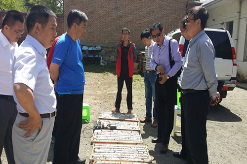 检查组一行来到华阳川项目部后,首先查看了生活条件和岩芯样品管理;随后又来到钻探现场,实地检查安全管理工作。