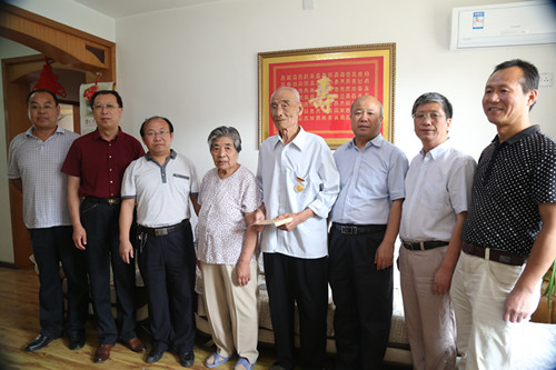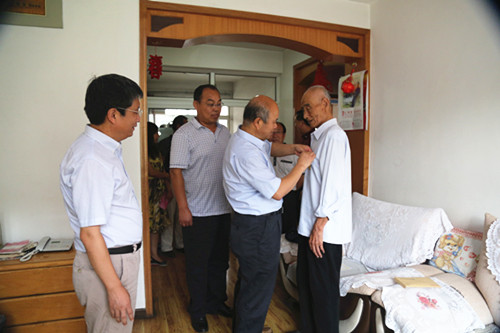 高利鹏副总经理一行分别到李保生、孙即兴两位抗日老战士家中,亲自将“抗战70周年纪念章”戴在他们胸前,并深情地说:“看到您们身体健康,我非常高兴。您们不怕牺牲,舍生取义,把日本帝国主义列强赶出了国门,您们是国家的骄傲,人民的骄傲,也是我们集团公司的骄傲。党和国家没忘记您们,人民没忘记您们,我们集团公司更没有忘记您们。今天,我代表集团公司党委来看望您们,就是要铭记历史,弘扬革命传统,建设好我们的家园。”随后,高利鹏副总经理将慰问金交到两位抗日老战士手中,希望他们保重身体,安享晚年。