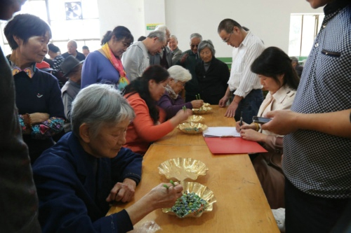 “金豆搬家”更具有观赏性和技巧性。要求队员在一分钟内用滑溜溜的筷子将小小的玻璃球从一个盘子夹到另一个盘子。这个项目考验的是心态和方法,有的离退休职工心里越着急越夹不上一个球,还自言自语地说:“筷子这么滑,怎么夹得上来”;有的静下心来,滑溜溜的筷子竟然运用自如,一个、两个、三个,一分钟竟然夹了32个,是当之无愧的冠军!