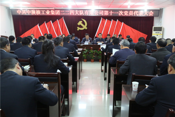 4月12日,中国共产党中陕核工业集团二二四大队有限公司第十一次代表大会在办公楼六楼会议室隆重召开。来自公司10个党支部的61位代表参加了会议。