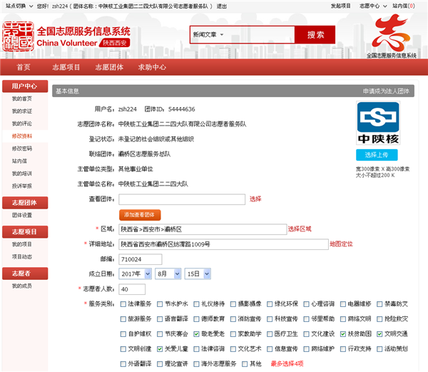 近日,公司文明志愿者服务队在中国志愿服务网、全国志愿服务信息系统“志愿云”西安站注册成立,服务队以“中陕核工业集团二二四大队有限公司志愿者服务队”命名,40名思想素质好、业务能力强、工作作风实的优秀员工通过审核,成为了志愿者服务队队员。