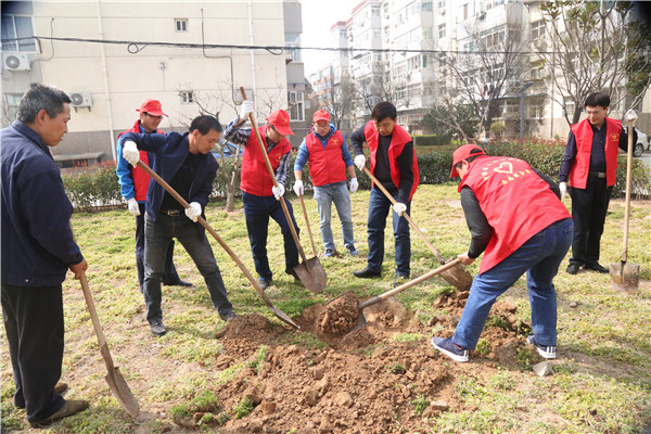 春回大地,万物复苏。3月12日,植树节来临之际,为提高广大职工志愿服务意识,倡导环保精神,共建绿色小区,公司学雷锋志愿者服务队在小区开展了以“志愿服务·绿化家园” 为主题的学雷锋义务植树志愿服务活动。