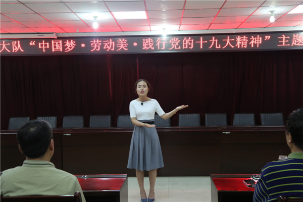 为深入推动习近平新时代中国特色社会主义思想和党的十九大精神进企业、进项目、进班组,5月11日下午,公司特举办以“中国梦·劳动美·践行党的十九大精神”为主题的微宣讲活动。公司党委书记、董事长田社生,纪委书记、工会主席刘海峰,调研员高明以及公司党员、职工代表参加活动?;疃晒镜橙汗ぷ鞑坎砍こ卵蔷鞒帧?/span>