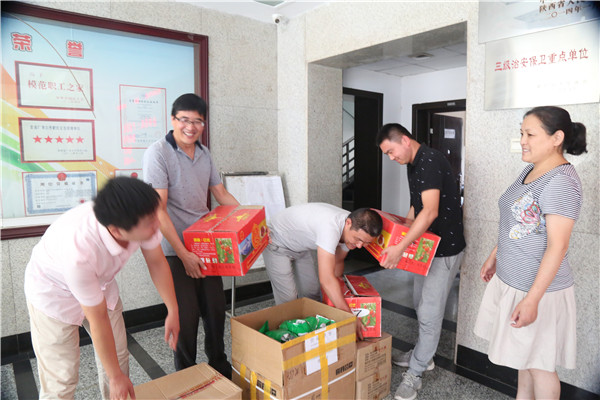 公司工会办主任陈亚军带领工作人员为公司职工发放了茶叶、绿豆、冰糖、乌梅粉等防暑降温物品,并叮嘱各分会要高度重视防暑降温工作,合理安排好职工作息时间,切实做好相应防暑降温措施。