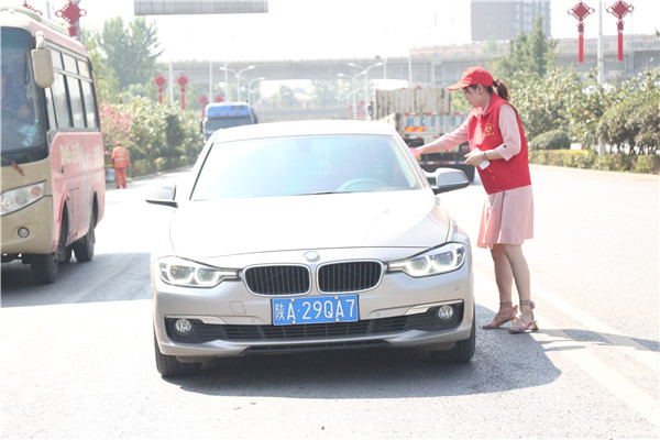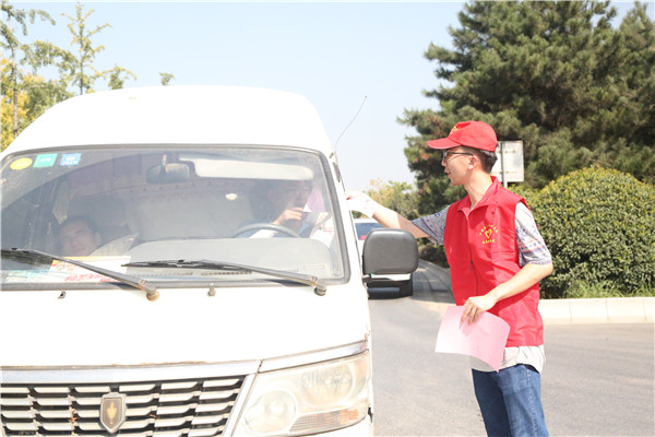 在炎炎烈日下,志愿者们到达世博大道与纺渭路十字路口,对过往的行人和车辆发放“文明礼让当先行”倡议书,提醒广大市民文明出行,文明礼让,进一步提高广大司机朋友主动礼让意识,提升市民出行安全指数,增强市民的幸福感和公司职工的责任感。