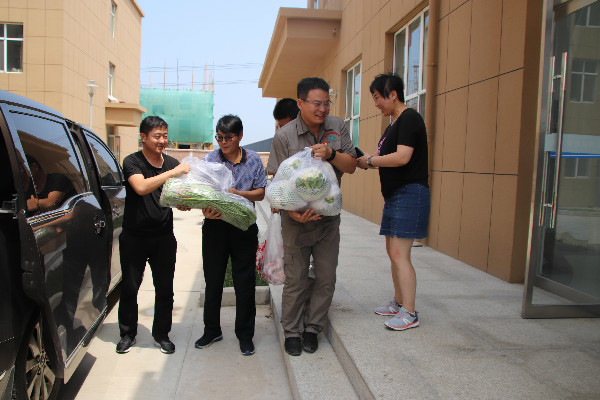 8月3日上午,二二四大队有限公司工会主席、纪委书记刘海峰带领党群工作部部长陈亚军、纪检监察部部长叶飞等人,到潼关中陕核钼业有限公司深入一线送清凉,为职工们送来了西瓜、饮料、蔬菜、绿豆、凉茶等防暑慰问品。