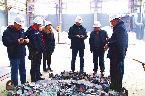 胡刚一行深入生产区参观了中控室、氧化钼生产线、钼铁生产线和硫酸车间等,对产品品质、市场定额和副产品硫酸处理情况现场进行了详细交流。在项目会议室,郭金锁汇报了二二四大队经营发展、组织机构设置和二级经营单位运营情况;双方重点就钼焙烧项目生产规模、工艺加工、产能收入、市场开拓、后期规划等方面进行了座谈交流。