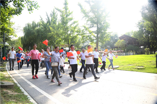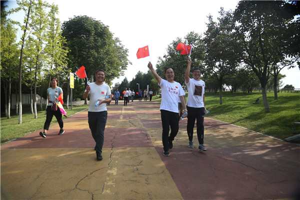 9月24日下午,广大职工高举国旗,呐喊口号,以矫健的步伐,昂扬的士气,走在西安世博园健步道上,展现二二四人的良好精神状态,彰显二二四人的满腔爱国精神。大家表示:作为祖国母亲的儿女,我们由衷为祖国母亲70年发展取得的骄人成绩感到自豪。我们将以更加健康的体魄、更加饱满的热情和更加昂扬的斗志,为公司高质量发展做出新成绩,为祖国更加美好的明天贡献力量。