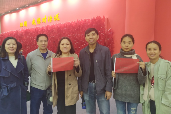 展览通过“家国情怀”“追赶超越”“不忘初心”等板块,全方位、立体化生动展现了新中国成立70年来国家和陕西省发生的翻天覆地的新变化新成就。驻足展厅主题版块,大家认真参观,聆听讲解,仔细阅读,细细品味,深切领会了新中国70年来不断砥砺奋进的坚实脚步和三秦儿女不断追赶超越的奋进步伐。在“奋斗足?!闭拱澹蠹颐娑缘称?,庄严地举起右臂,以铿锵有力的誓词铭记党员初心使命,彰显爱国奋斗情怀;在“祖国,我想对你说”板块,大家纷纷在红旗上写下祝福语,满怀深情地向祖国告白,衷心祝福伟大祖国繁荣昌盛。