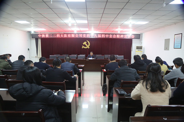 自党的十九届四中全会精神宣讲工作开展以来,二二四大队以高度的思想自觉、政治自觉和行动自觉,线上线下一体宣传,制定方案积极部署,辅以《宣讲提纲》《〈决定〉学习辅导》抓好宣讲,在公司上下迅速掀起了学习热潮,营造了浓厚的学习氛围和舆论氛围,确保了全会精神在公司落地生根、取得实效。