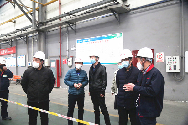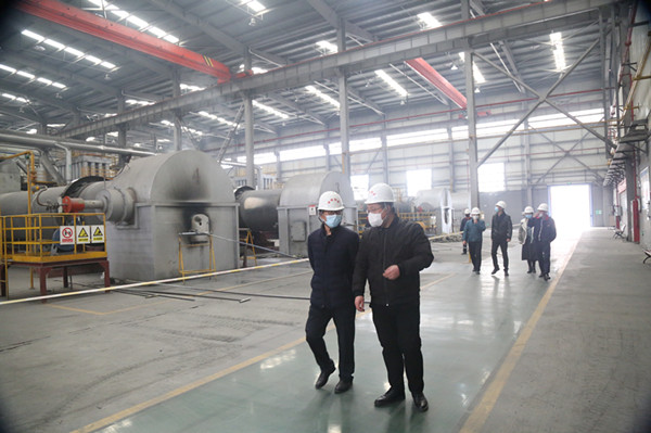 陈冰一行详细查看了氧化钼车间运行情况,就生产原料钼精矿采购、氧化钼产品销售及深加工(冶炼钼铁)、现阶段生产规模与日产量等问题与康清清等人进行了详细交流。座谈中,陈冰一行认真听取了康清清关于当前公司疫情防控工作开展情况及职工复工复产健康管理情况的汇报以及公司分会主席、副总经理刘振川关于分会工作开展情况的汇报。