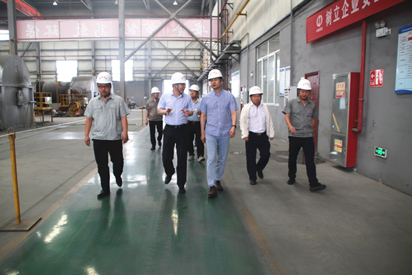 侯峰副总经理一行先后参观了中控室、氧化钼生产车间、硫酸生产车间、钼铁生产车间,就各车间生产工艺、日产能、原料供给保障与产品销售、专业技术人才队伍等情况进行了充分交流。