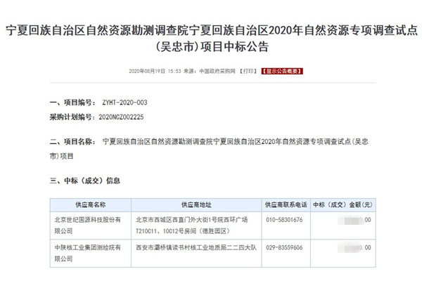 8月19日,喜讯传来,测绘院成功中标宁夏回族自治区2020年自然资源专项调查试点(吴忠市)项目。