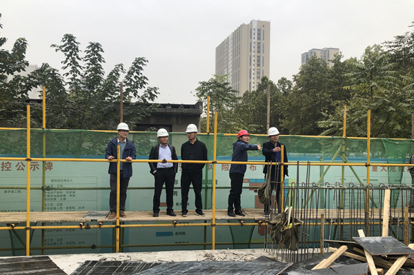 10月26日,陕核大厦建设项目正在进行酒店区域及写字楼北侧满堂架搭设,在此重要节点,公司党委副书记、总经理郭金锁带领行政人事部负责人一行到项目工地检查指导工作,陕西秦星实业公司常务副总经理胡小佳等陪同检查。