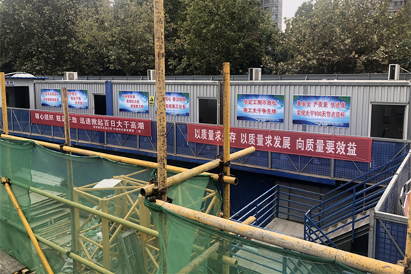 郭金锁总经理详细检查了酒店区域及写字楼北侧满堂架搭设情况,认真听取了胡小佳常务副总经理关于施工进展及下一步施工计划的汇报,他强调,一是对照“百日劳动竞赛”方案,加快推进项目建设,确保按照时间节点完成建设任务;二是进一步加强安全教育,强化安全管理责任意识,确保施工过程科学安全规范;三是加强现场人员管理,以最严密的措施,持续做好疫情防控常态化工作。