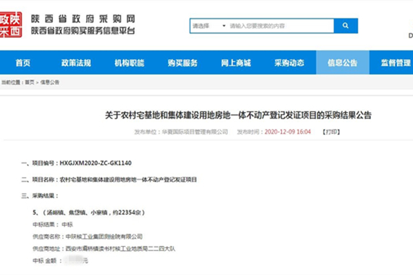 12月9日,测绘院成功中标蓝田县农村宅基地和集体建设用地房地一体不动产登记发证项目(第五标段)。