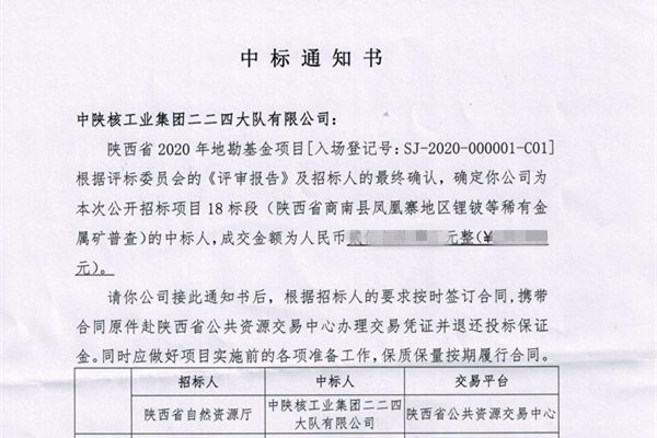 12月25日,从陕西省自然资源厅获悉,公司成功中标陕西省2020年地勘基金项目18标段——陕西省商南县凤凰寨地区锂铍等稀有金属矿普查项目。