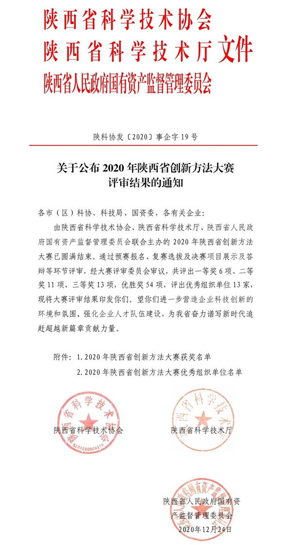 12月30日,陕西省国资委、陕西省科学技术协会、陕西省科学技术厅联合举办2020年陕西省创新方法大赛。测绘院自主研发的“测绘师测评APP软件”在大赛中荣获“优胜奖”。
