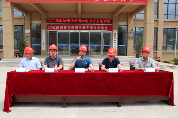 集团公司生产安全部部长张秦一行深入中陕核钼业有限公司现场督导硫酸储罐根部阀泄漏专项应急演练