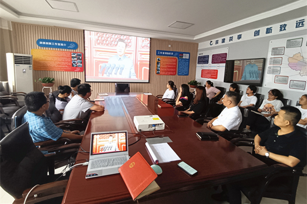 7月1日上午八时, 在全党上下心潮澎湃、激动万分的时刻,公司设主会场、两个分会场,组织党员干部职工130余人收看庆祝中国共产党成立100周年大会直播,聚精会神聆听习近平总书记重要讲话,不时响起阵阵掌声。
