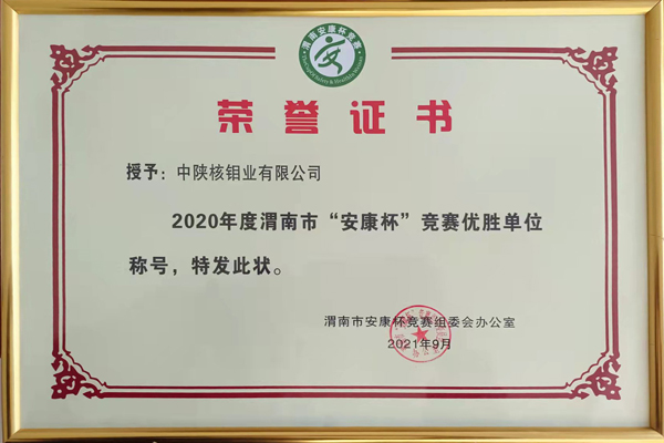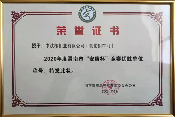 中陕核钼业有限公司荣获2020年度渭南市“安康杯”竞赛优胜单位等多项荣誉