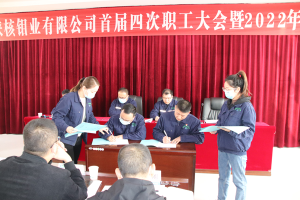 会议在慷慨激昂、催人奋进的国歌声中开幕。大会议程主要分两个阶段进行,一阶段完成了钼业公司各部门(车间)负责人述职述廉及民主测评,并就钼业公司领导班子进行了民主测评;二阶段与会人员认真听取了公司总经理助理、钼业公司党支部书记、总经理王强作的题为《稳中求进 攻坚克难 笃行不怠 再接再厉 全力谱写公司高质量发展新篇章》的工作报告,钼业公司总工程师、分会主席戴翔作的题为《凝聚力量 构建和谐 为钼业公司持续稳定发展保驾护航》分会工作报告,钼业公司财务总监刘建国作的《中陕核钼业有限公司财务工作报告》。大会表彰了2021年劳动竞赛各类先进集体和个人、安全环保先进集体和个人、分会活动优秀积极分子?;嵋榛骨┒┝祟庖倒居胨舾鞑棵牛ǔ导洌?/span>2022年生产经营目标责任书、安全环保目标责任书。