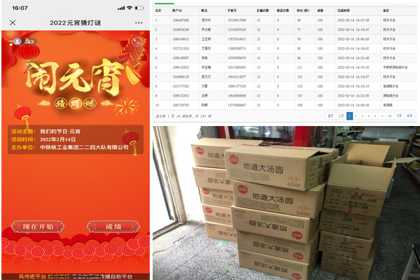 为进一步传承和弘扬中华民族传统节日文化内涵,迎接正月十五元宵节的到来,2月14日下午,公司工会组织开展了“我们的节日·元宵”猜灯谜送汤圆线上猜灯谜活动,活动设一等奖10名。广大职工踊跃参与,答题人数达到了183人。