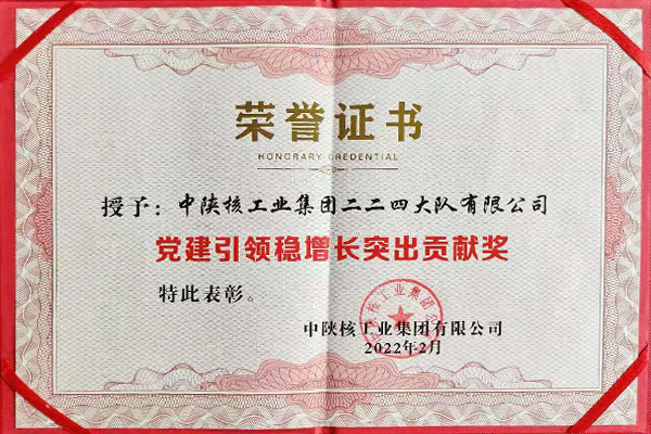 2022年2月15日,中陕核工业集团有限公司2022年党建与纪检监察工作会暨党建引领稳增长表彰大会在西安召开。公司荣获中陕核工业集团“党建引领稳增长”突出贡献奖。这是公司坚持党建引领、凝聚发展合力、提质增效推动生产经营工作的有力见证。