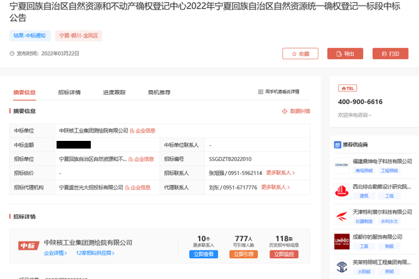3月21日,在宁夏回族自治区自然资源和不动产确权登记中心组织的“2022年宁夏回族自治区自然资源统一确权登记项目”公开招标活动中,中陕核工业集团测绘院有限公司成功中标,为一季度“稳增长”劳动竞赛再添佳绩。