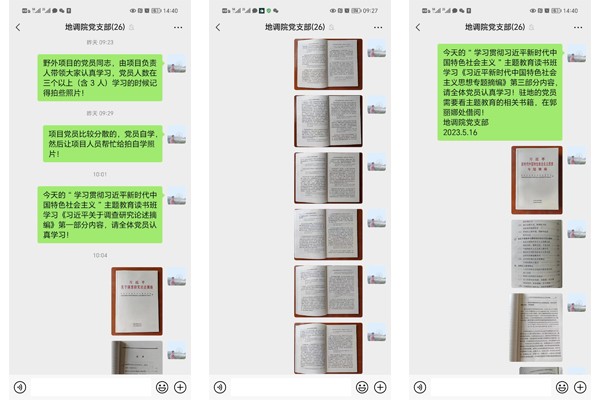 本次主题教育读书班学习内容丰富,以党的二十大报告、党章、《习近平著作选读》《习近平新时代中国特色社会主义思想专题摘编》《习近平新时代中国特色社会主义思想学习纲要(2023)》、习近平《论党的自我革命》《习近平新时代中国特色社会主义思想的世界观和方法论专题摘编》《习近平关于调查研究论述摘编》为主题教育必读书目。驻地党员按照公司党委《关于举办学习贯彻习近平新时代中国特色社会主义思想主题教育读书班的通知》日程安排,以党支部书记领学与个人自学相结合的方式开展读书班;野外一线3个项目部及时成立学习贯彻习近平新时代中国特色社会主义思想主题教育读书班专题学习小组,在项目经理的带领下高效有序开展学习;党员比较分散的野外项目,以个人自学形式开展。本次读书班共进行3次交流讨论、7次分组学习,持续提升党员的创新理论武装,营造了全员学习、全面学习、深入学习的浓厚学习氛围。